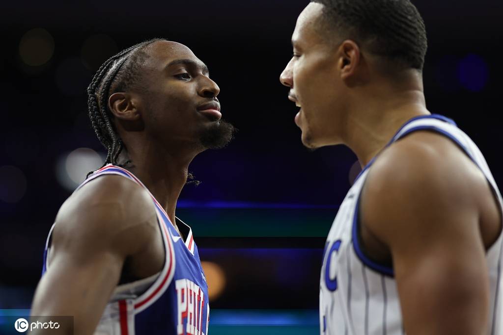 第四节,一开始76人的手感仍然不佳,双方的分差缩小至仅2分。随着比赛继续进行,76人逐渐找回状态,打出一波12分的小高潮。在本节后段,魔术则持续紧追比分。76人的马克西在这一节中表现突出,贡献12分,包含1记三分球。最终,76人以136-124赢下比赛。